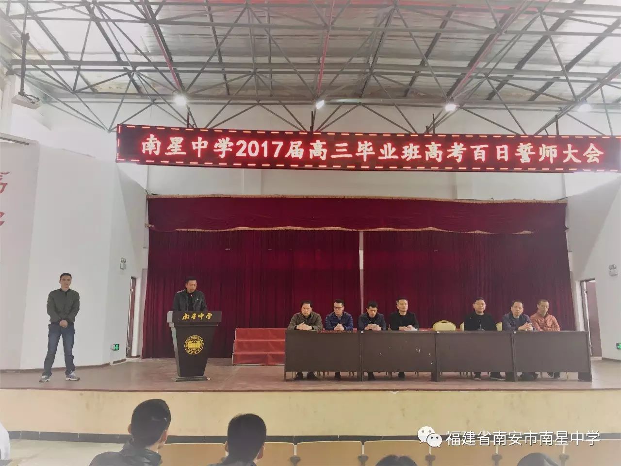 2017年2月26日上午,南星中学高三全体师生、学生家长聚集在吕梓材大礼堂,隆重举行2017届高三毕业班高考百日誓师大会。大会由高三年段负责人、教研室主任王斐老...…