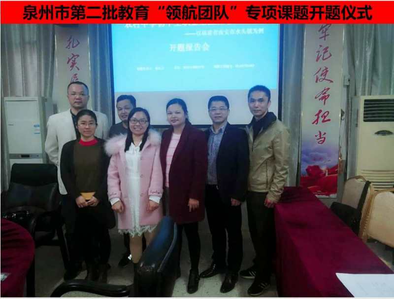 1月12日下午,我校曾庆兰老师(泉州市第二批教育“领航团队”培养对象)主持的泉州市教育“领航团队”专项课题《农村中学初中生职业生涯规划现状研究——以福建省南安市水头镇为例》(立项编号:QLHKT2-063)在校董楼二楼会议室举行开题仪式。