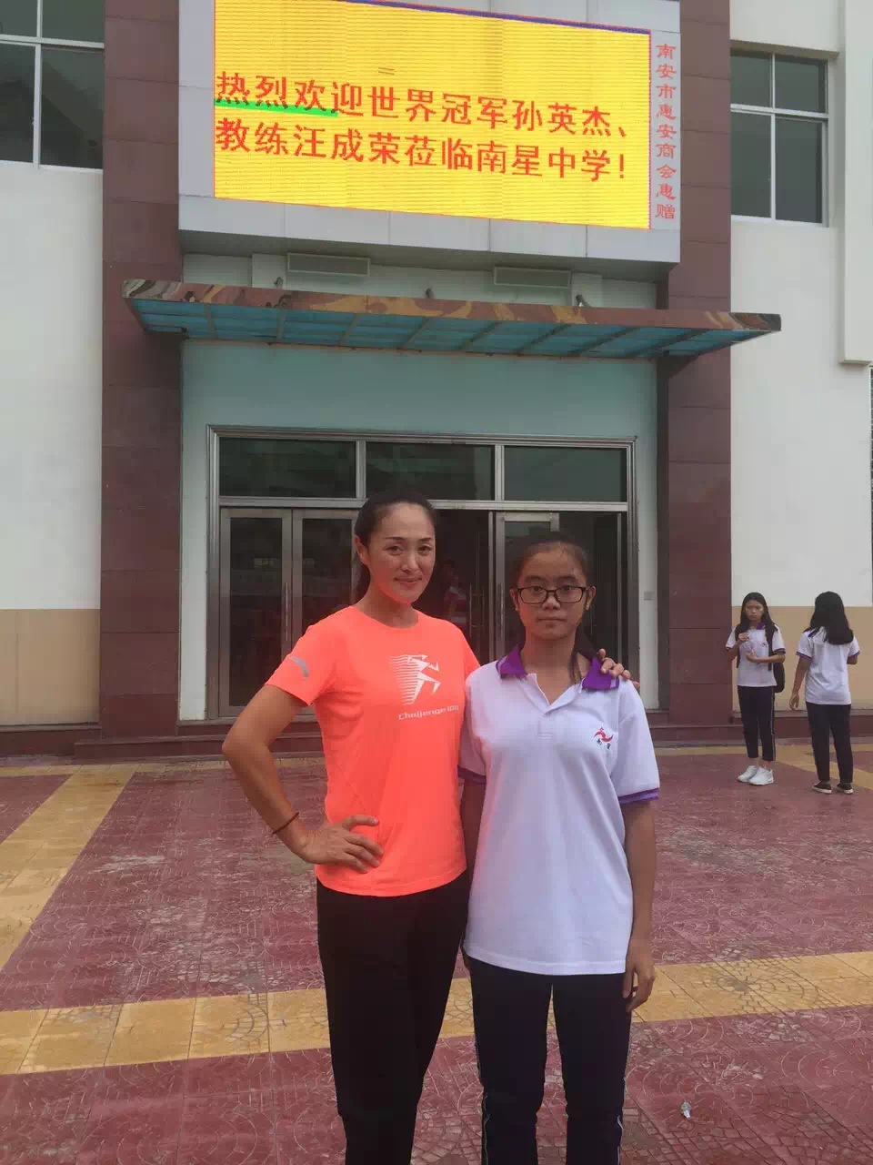 世界冠军孙英杰、教练汪成荣莅临南星中学参观指导