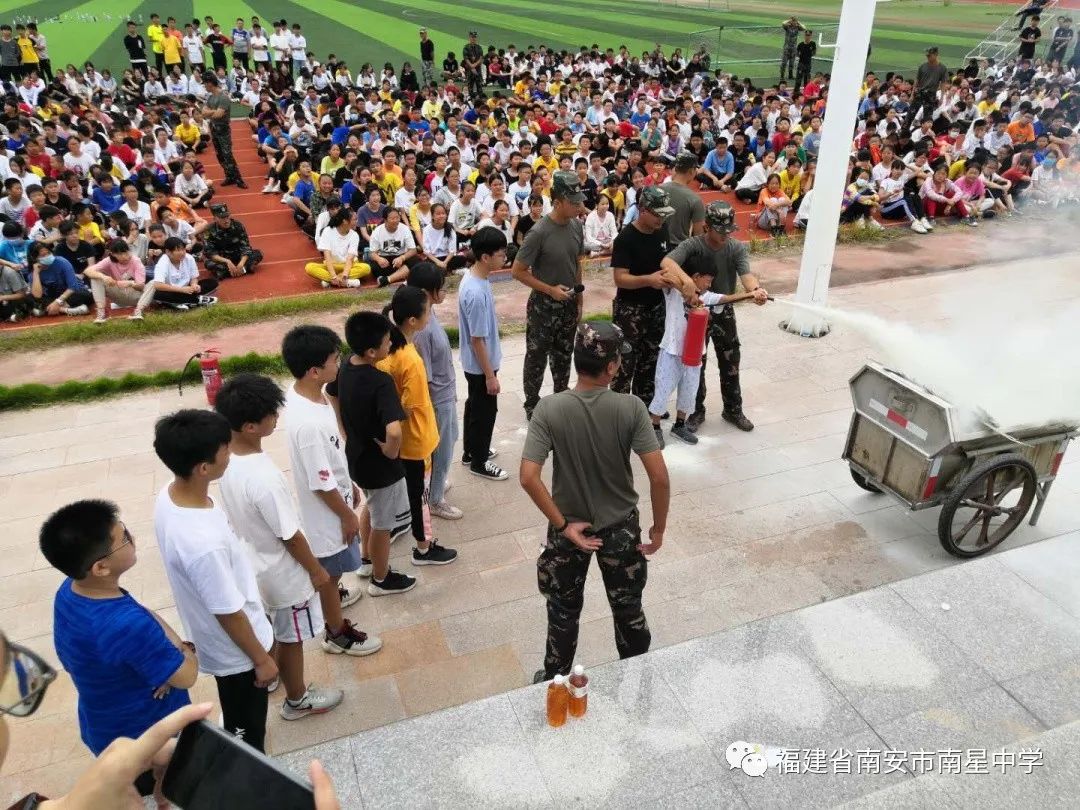 南星中学初一高一军训直击 金秋九月 秋风微漾 少年意气 蓬勃向上 神采奕奕 英姿飒爽 五里桥畔 军号嘹亮 为切实推进素质教育进程,增强素质教育的实效性,加强爱国主义、集体主义教育,增强学生国防观念和国家安全意识,培养学生动手实践的兴趣与习惯,开拓他们的视野,丰富课外生活内容,逐步提高新生的综合素质,我校邀请泉州市国防教育基地作训团队于9月24日至26日为初一年、高一年全体学生开展为期三天的军训活动。 班主任教官军训见面筹备会 9月23日晚七点半校董楼会议室 学生军训教育动员大会 9月23日晚吕梓材大礼堂 动员大会 新生入学开营式 9月24日上午南星中学田径运动场 军训剪影 2020 9/25 消防安全知识讲座、消防演练 9月24日晚吕梓材大礼堂 安全可以演练 生命不能彩排 生命重于泰山 实战防患未然 拔河比赛 力拔山兮气盖世,气冲云兮志不逝 单丝不成线 独木不成林 团结一致 坚持到底 拔河比赛获奖班级: 冠军:初一12班、高一2班 亚军:初一8班、高一7班 季军:初一6班、高一5班 ational Day 团结坚持 会操比赛:会操展风采 英姿致青春 9月26日下午南星中学田径运动场 军训总结与表彰大会 9月26日下午南星中学运动场 滑动查看更多 军训是一场与成长和责任的邂逅 是对自己的一次磨砺 更是人生中一段宝贵的经历 南星新生学子们 将趁青春 乘风破浪 策划:蔡 署 供稿:初一、高一年段 编辑:苏亚明、林婷婷 审核:洪侨柳 扫二维码|关注我们