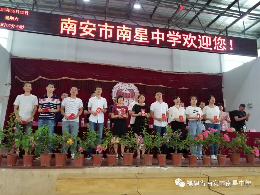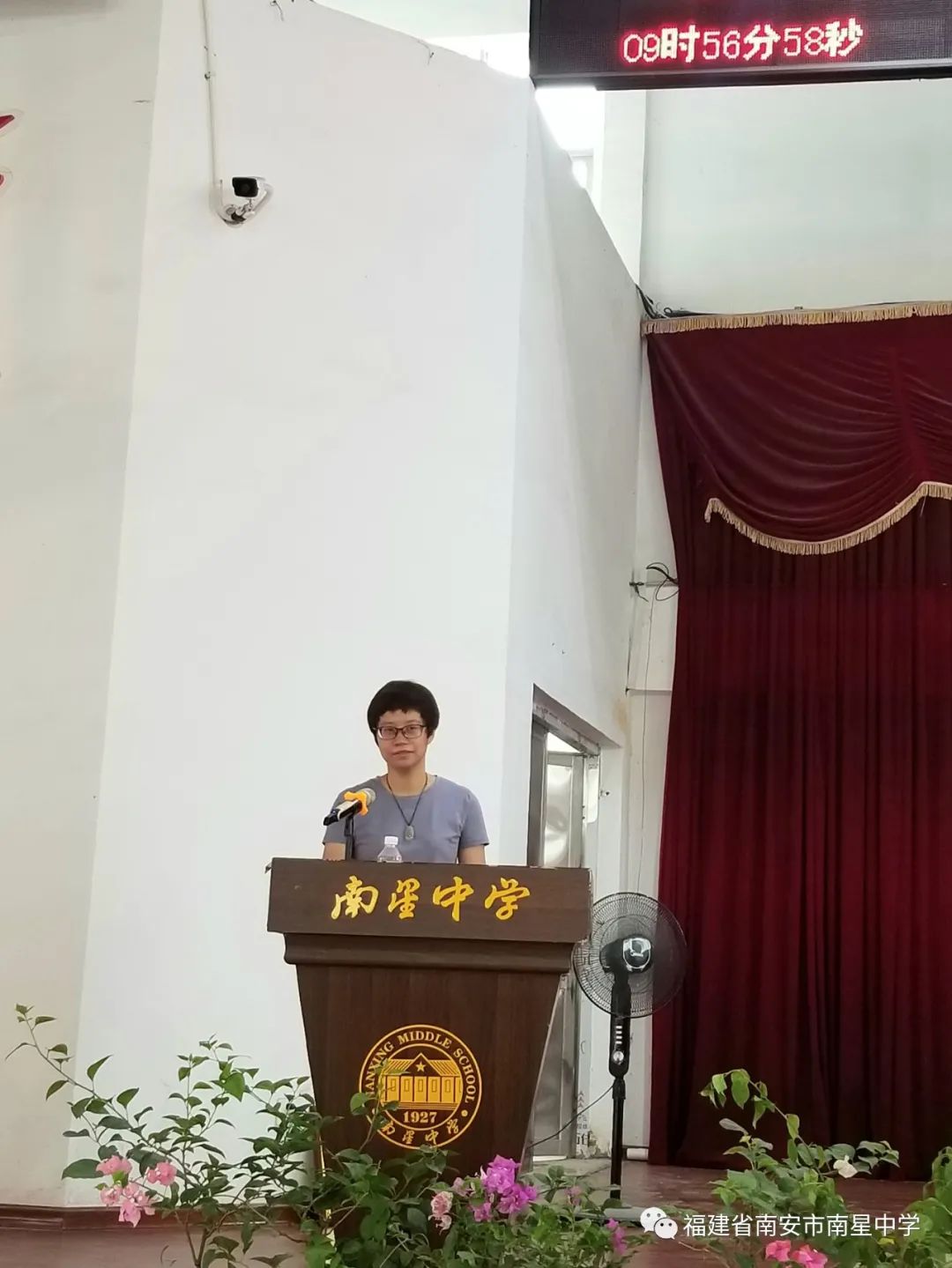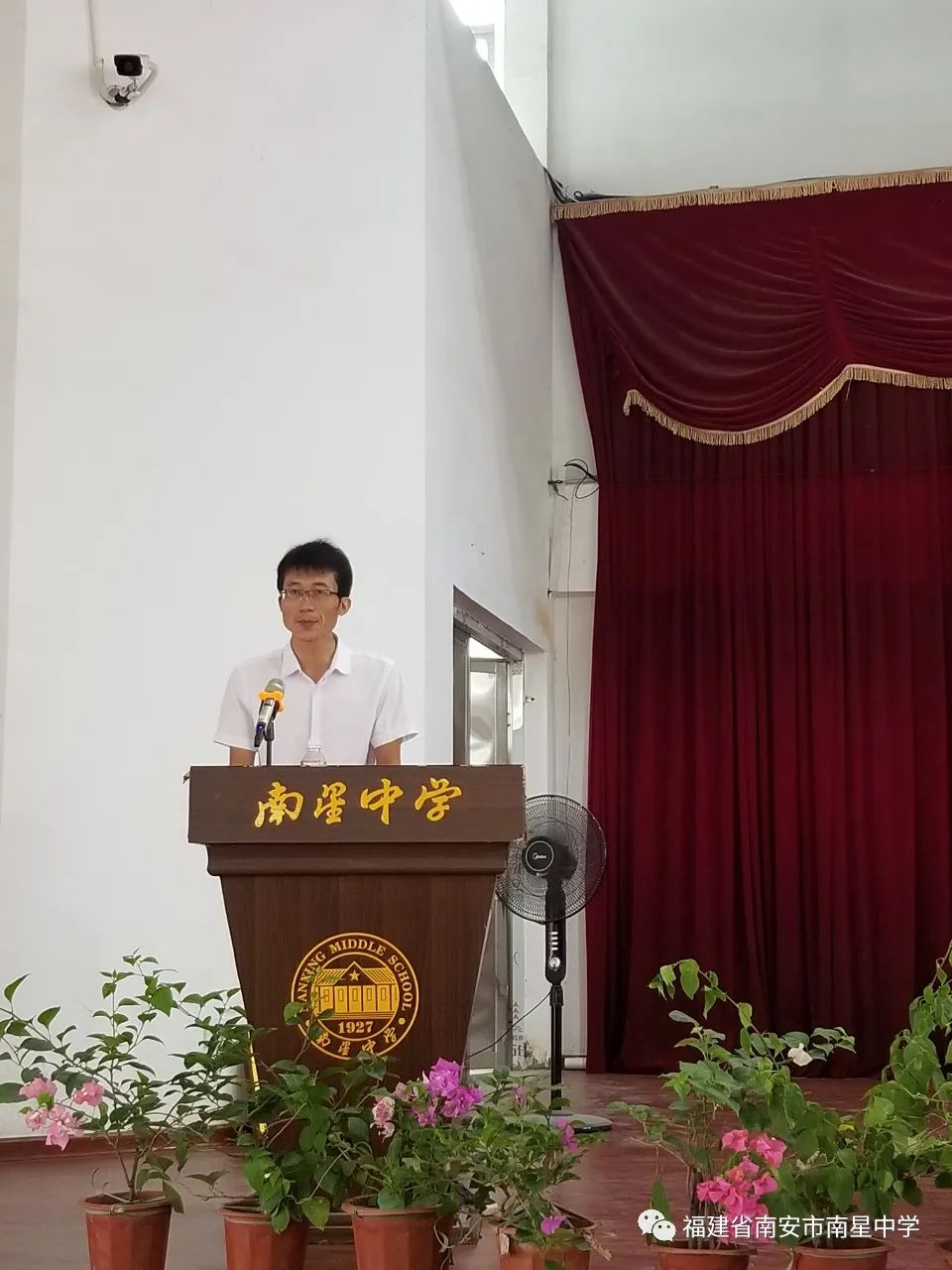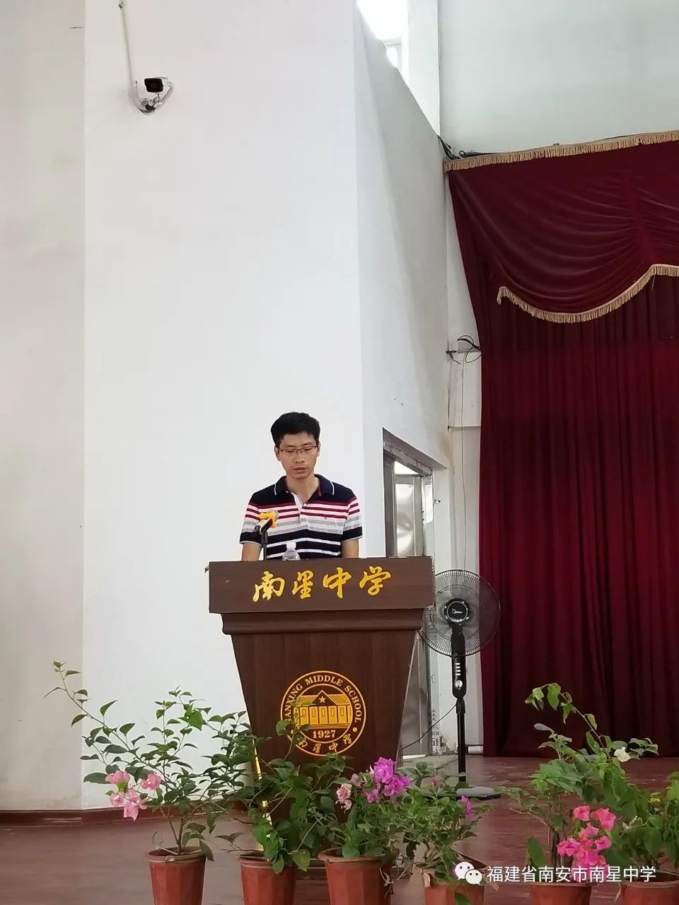 年段长沈金足老师宣布辉盛石业有限公司董事会代表吴国庆总经理慷慨解囊,捐资人民币贰万元设立奖教教学基金,表彰南星中学高二年级在过去一年中取得优异成绩的教师和学生,以此支持助力南星中学2022届年高二年段工作。