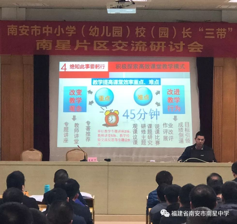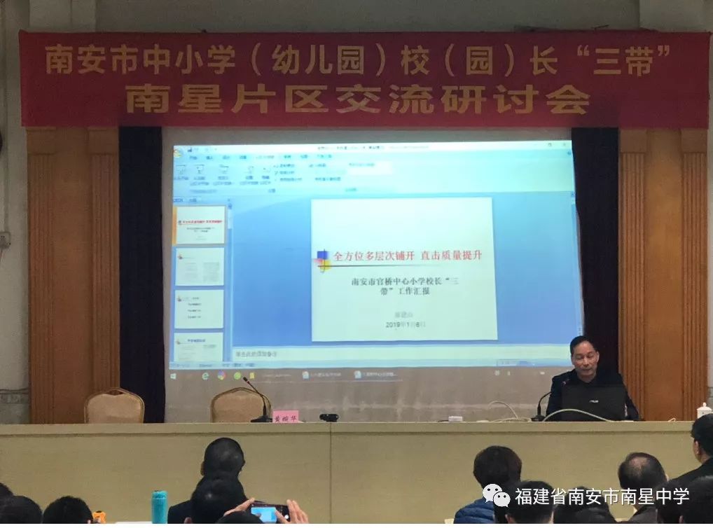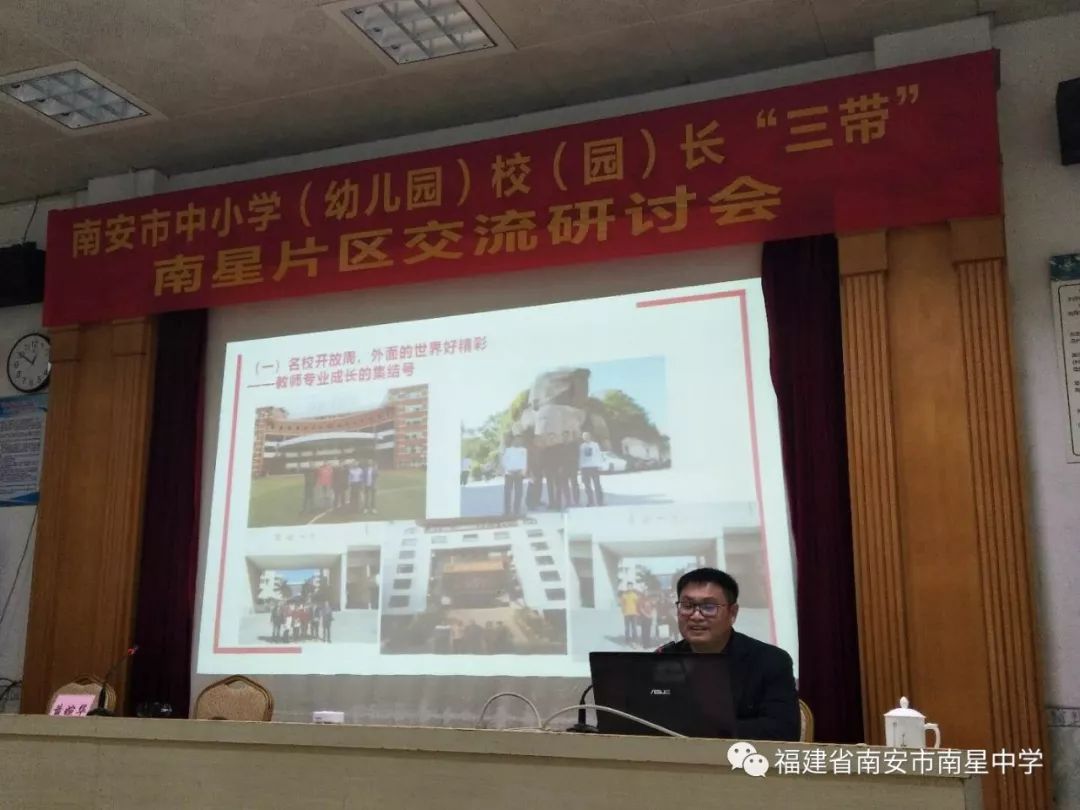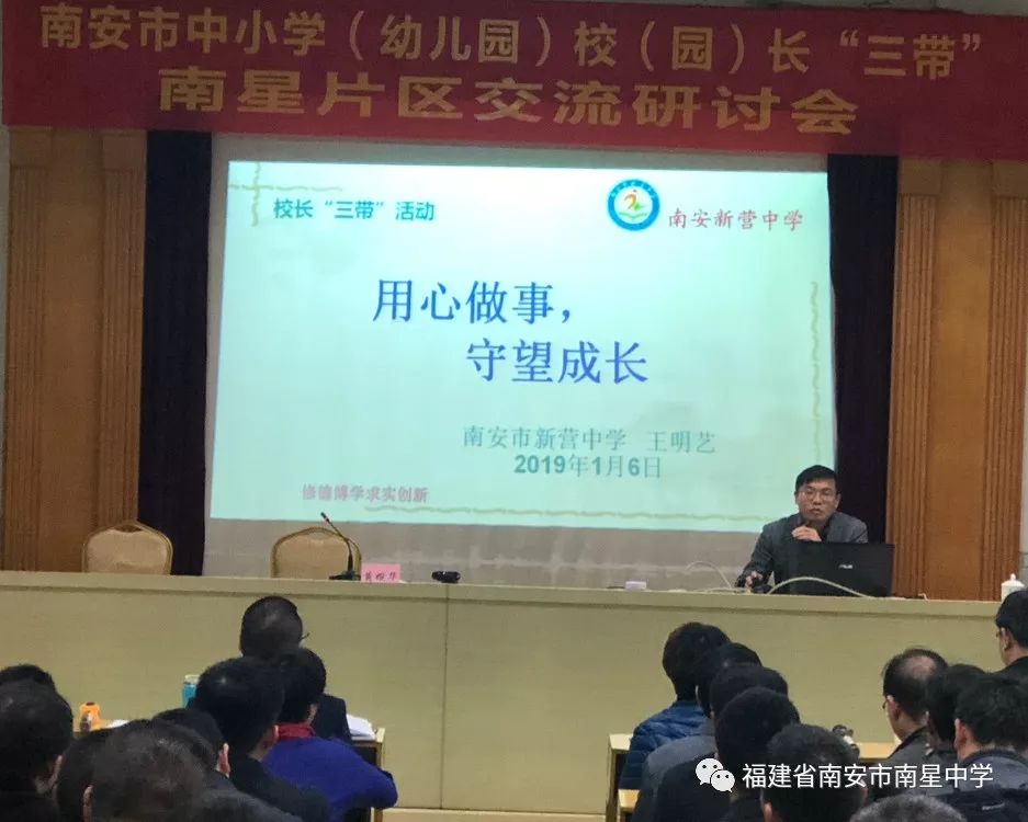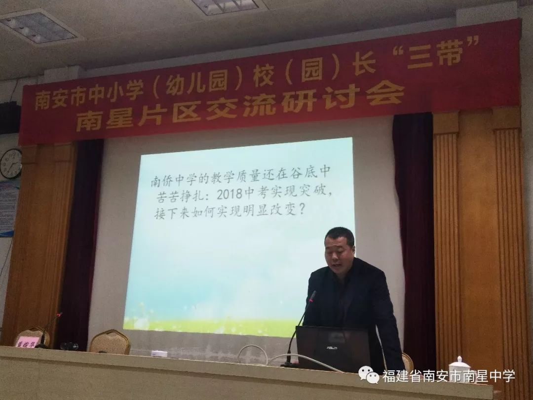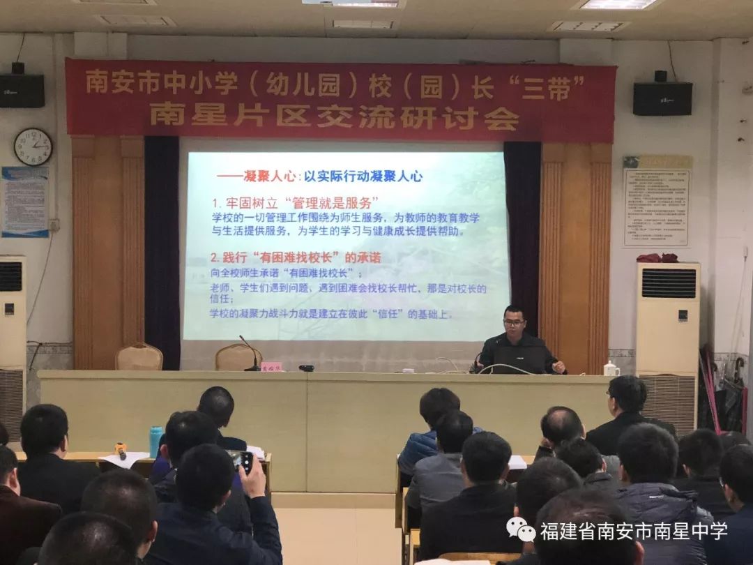 为切实做好南星片区校(园)长“三带”交流研讨活动,发挥校(园)长的交流引领作用,促进校际团结协作,积极探索学校发展道路,提升学校教育教学质量,推动片区教育教学工作的深入开展,根据《南安市教育局关于开展中小学(幼儿园)校(园)长“三带”片区交流研讨活动的通知》精神,1月6日下午,南星片区校(园)长“三带”交流研讨活动在南星中学教师会议室举行。出席本次活动的有南安市教育局党组书记、局长张碧清、副局长黄婉华、主任科员梁赐生及业务科室相关人员、进修学校教研员一行,官桥、水头、石井各中学、中心小学、市直小学(幼儿园)校(园)长、完小校长、乡镇中心幼儿园园长以及南星中学全体行政。