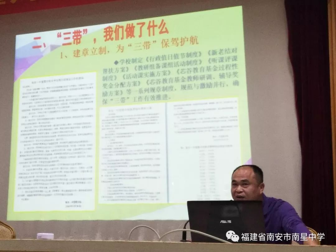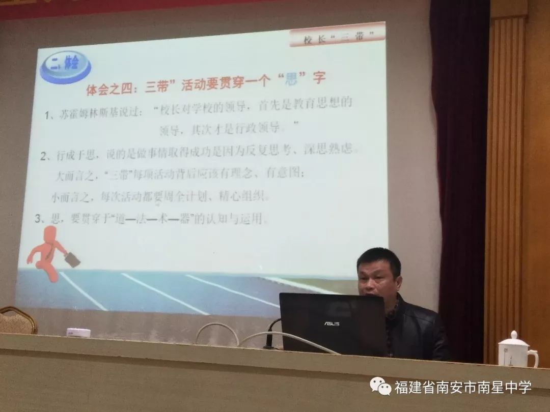 首先,五星中学、南星中学、延平中学、官桥中心小学、水头中心小学、石井中心小学等19所中小学校长分别就开展“三带”活动的主要做法、成效、困惑等作6分钟的精彩发言。张局长就个别校长发言中的问题,及时问诊、精准把脉、开出药方、指点迷津。