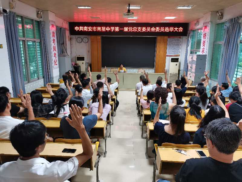 凝心聚力再扬帆 砥砺奋进新征程 南星中学召开第一届党总支委员会委员选举大会 为加强基层党组织建设,配齐配强领导班子,健全党的民主集中制,根据《中共南安市教育系统委员会关于同意调整南星中学党组织设置的批复》(南教党委【2020】16号),9月25日下午,南星中学召开第一届党总支委员会委员选举大会,会议由洪侨柳书记主持。 首先,洪侨柳书记对本次党总支委员会委员选举筹备工作进行了介绍,从候选人名单的确立、选举工作的严肃性、民主集中制原则等方面进行了详细的说明,希望广大党员依法行使党员权利,选举出敢提当、勇作为、能创新的总支委员会委员。 接着,本次大会严格按照《党章》和党内选举的有关规定进行,张温情副书记宣读《选举办法》(草案),经参会党员酝酿通过,并现场推选监票人和计票人,选举采用无记名投票的方式和差额选举的办法进行。经现场投票计票,洪侨柳、黄新生、张温情、徐文彬、江鸿霖、蔡署、周龙拿等七位同志当选为中共南安市南星中学第一届党总支部委员会委员。 最后,第一届总支委员会召开支委第一次会议,选举洪侨柳同志为总支部书记,黄新生、张温情同志为总支部副书记,并对委员进行分工,徐文彬同志任组织委员,江鸿霖同志任纪检委员,张温情同志兼任统战委员,蔡署同志任宣传委员,周龙拿同志任青年委员。 此次党总支委员会选举取得圆满成功,既巩固了基层党组织的领导核心地位,也为学校的可持续发展提供了坚强有力的组织保障,全体党员也得到了一次严肃、民主的党内生活的形式和内容教育,增强了党员的凝聚力和归属感。相信在新一届领导班子的带领下,南星中学将以新的理念引领党员干部,充分发挥基层党组织战斗堡垒和党员先锋模范作用,立足新起点,勤勉务实,勇于担当,开启新的征程。 策划:蔡 署 图文:王档良 编辑:苏亚明 林婷婷 审核:洪侨柳