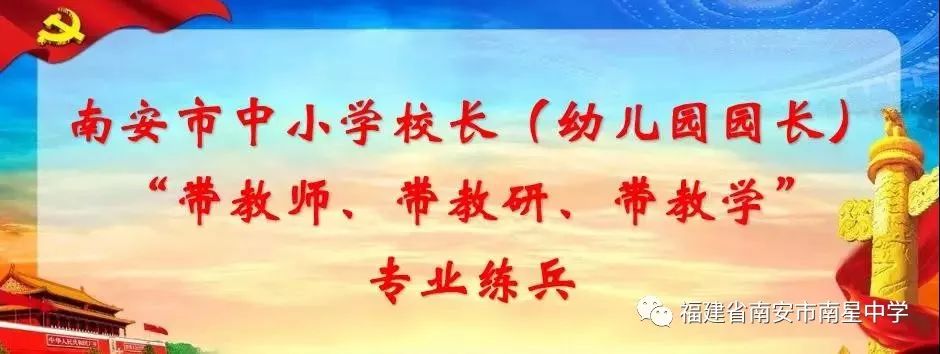 为贯彻落实《南安市教育局关于开展中小学校长“带教师、带教研、带教学”专业练兵活动的通知》精神,南星中学结合迎接福建省一级达标高中复评中心工作,立足学校教育教学实际,深入开展校长“三带”专业练兵活动,努力提升校长领军教研、引领教学、促进教师专业成长的能力与水平,着力打造高效课堂,不断提升教育教学质量。目前,校长“三带”专业练兵活动在南星中学有序进行,取得初步成效。