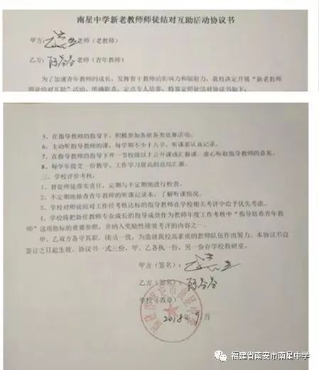 尤春生校长与数学科青年教师陈芬芬签订“师徒结对协议”,深入课堂指导教学,助推青年教师专业成长。