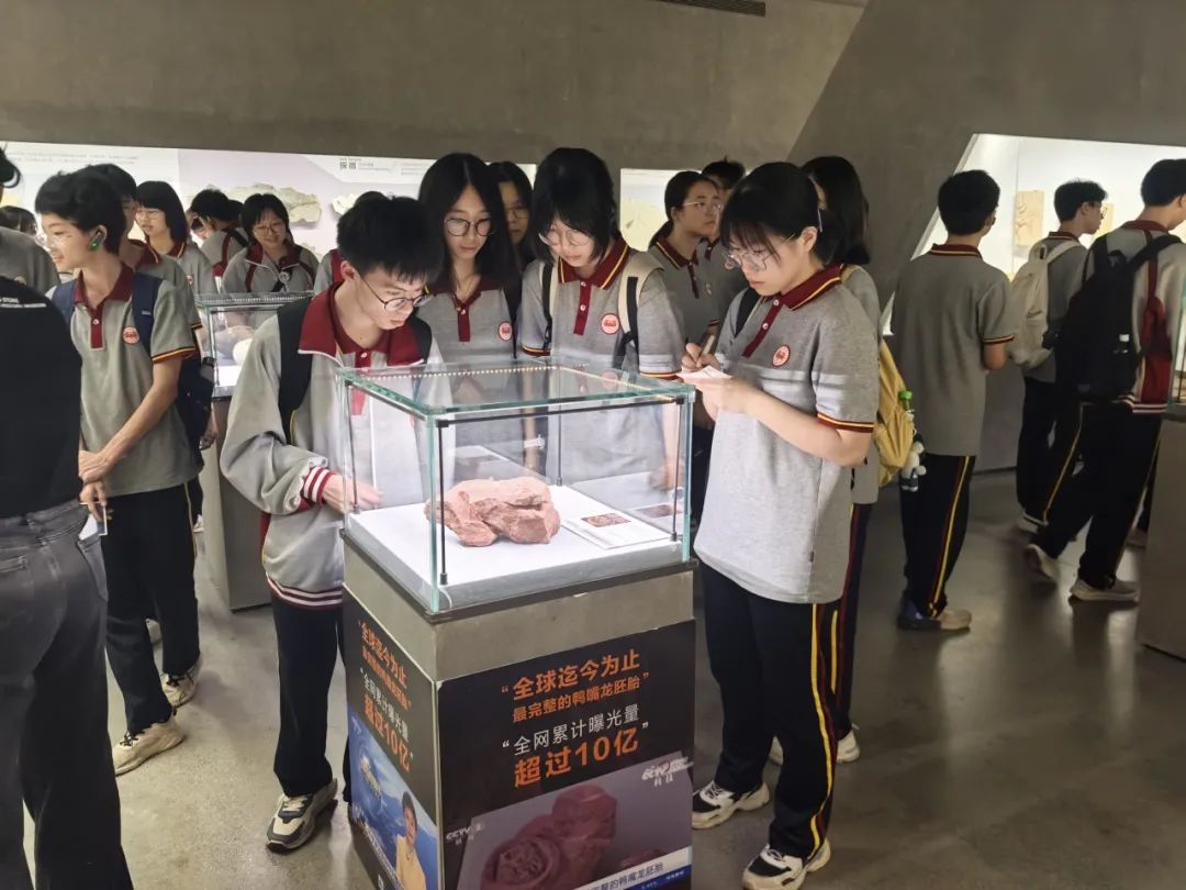 研学,不仅仅是走出校园,参观博物馆的旅程,它更是我们开阔视野,走进历史,接触自然的机会。在6月1日这天,我们徒步到英良石材自然历史博物馆,博物馆讲解员为我们介绍了陨石的两种分类,从化学和地理的角度解释了火山灰怎么变成沉积岩。讲述了地球的历史,让我们学习知识不仅仅只停留在教室,走入博物馆,近距离观察地球历史。此外我们还近距离观摩了恐龙化石,了解中生代时期的生活,早期蛋胚胎的化石,破解了困扰很久的问题“是先有鸡先有蛋”,观摩了镇馆之宝名为“英良贝贝”的恐龙蛋化石,知晓达尔文对生物学的巨大贡献……