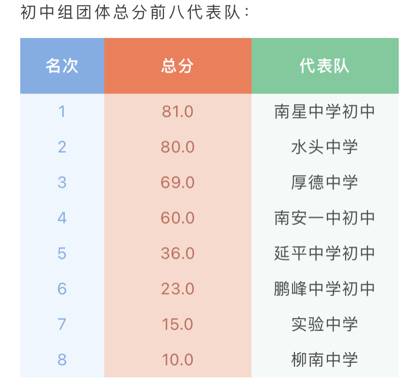 初中组团体总分第四名