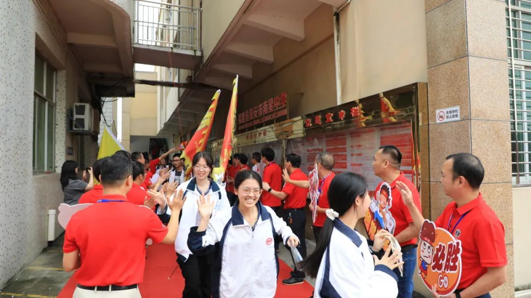 985警车 暖心水果 送考队伍 2024年高考首日 直击南星中学考点 让我们共同祝愿这群追梦少年 握笔星辉 圆梦六月 01 985警车护航 985警车前往南星中学滨海校区 助力学子高考提笔战四方 携梦想齐奔跑 02 新校区与老校区的接力 校友的甜蜜助力 去年8月,南星中学的高中部迎来了新的篇章,正式搬迁至滨海新校区,开启了全新的教育征程。然而,今年的高考考场却选择设在承载了无数回忆和历史的五里桥老校区。为了解决新校区考生的接送和休息问题,南星中学和水头交警携手合作,为考生们提供了一系列贴心服务。 在接送方面,水头交警充分发挥了专业优势,为送考车辆开道,确保考生们能够准时、安全地到达考场。这一举措不仅减少了考生们的交通压力,也让他们能够更加专注于即将到来的考试。 而在休息方面,南星中学在五里桥老校区设立了58间临时休息宿舍,供考生们午休使用。这些宿舍环境舒适、设施齐全,为考生们提供了一个良好的休息环境。在这里,他们可以暂时放下紧张的学习状态,调整身心状态,为下午的考试做好充分准备。 除了学校和交警部门的努力外,南星中学97届校友吕志贤也连续三年为南星考点全体学生捐赠水果。油桃,寓意着学子们能够“桃”李满天下,学业有成;香蕉,象征着顺利和如意,祝愿考生们考试顺利;苹果,给考生带来平安高考的美好祝福。吕志贤校友的助力,让南星学子们在紧张的备考期间感受到一份来自校友的甜蜜和温暖。 03 传统送考仪式来逗阵 6月7日,南星中学的传统送考仪式再次点燃!从2012年到现在,这个独特的仪式已经陪伴了无数学子走进高考战场。 今年,南星送考团由高三教师和学校行政人员组成,超过30名成员,他们统一身着象征着胜利与祝福的红色Polo领,手持应援牌,列成两队,满面笑容地和学生们击掌,加油声不绝于耳,里面饱含着殷殷期盼和深深祝福。今年高三年段还特别增添了新的元素——头顶粽子,寓意着考生们能够一举高中,金榜题名! 南星中学的这一传统仪式,不仅是对考生的鼓励和祝福,更是学校文化的一种传承和弘扬。 祝愿广大考生高考顺利金榜题名 策划:校宣组 高三年段 视频制作:庄文权 编辑、初审:李诗婷 复审:林夏蓉 终审:郑振隆