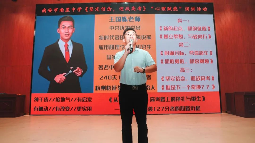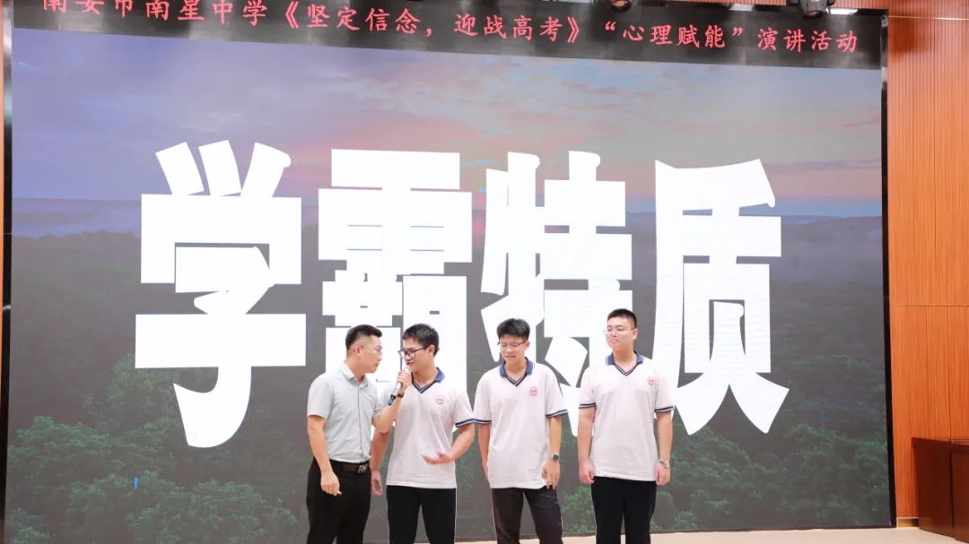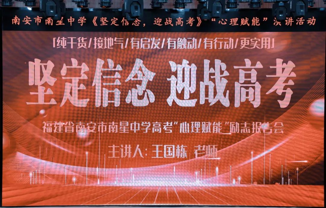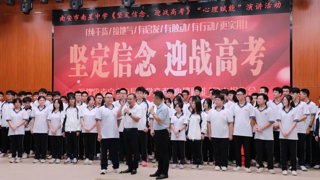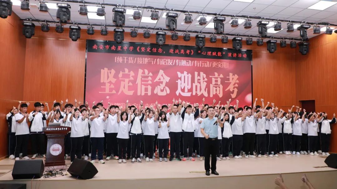 为进一步弘扬爱国主义精神,培养我校师生的家国情怀,唤醒学生们的精神世界与内在学习动力,冲刷过往负能量,激发学生学习的主动性,帮助南星人树立高考必胜的理想信念,我校于2024年9月23日晚在滨海校区举行了《坚定信念,迎战高考》的“心理赋能”演讲活动。本次活动由林夏蓉副校长主持,南星中学高三全体师生、新营中学高三部分优秀学生、南星中学中层行政以上人员、年段长和处室干事等参与。