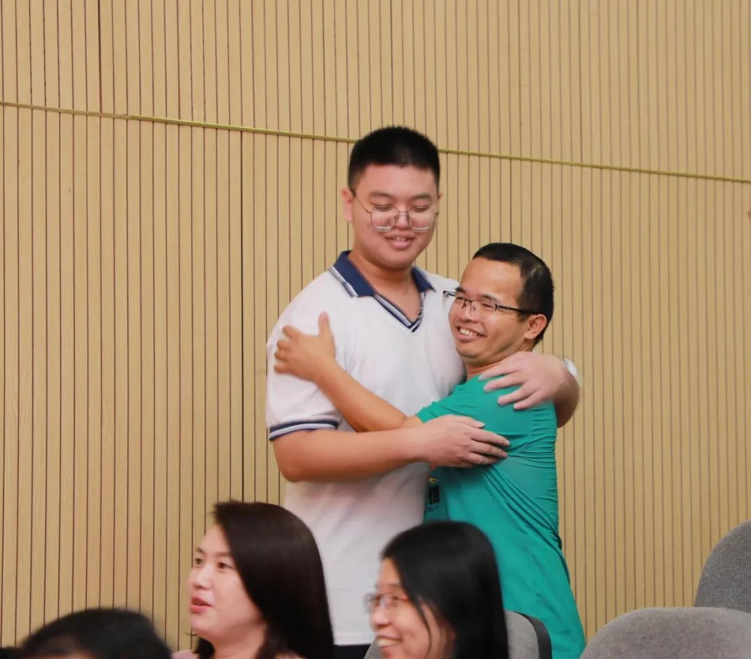 活动一:王国栋老师鼓励在场师生进行拥抱互动,以感恩之心唤醒师生内心的共鸣,实现了教师与学生之间的同频共振,让师生为彼此赋能。