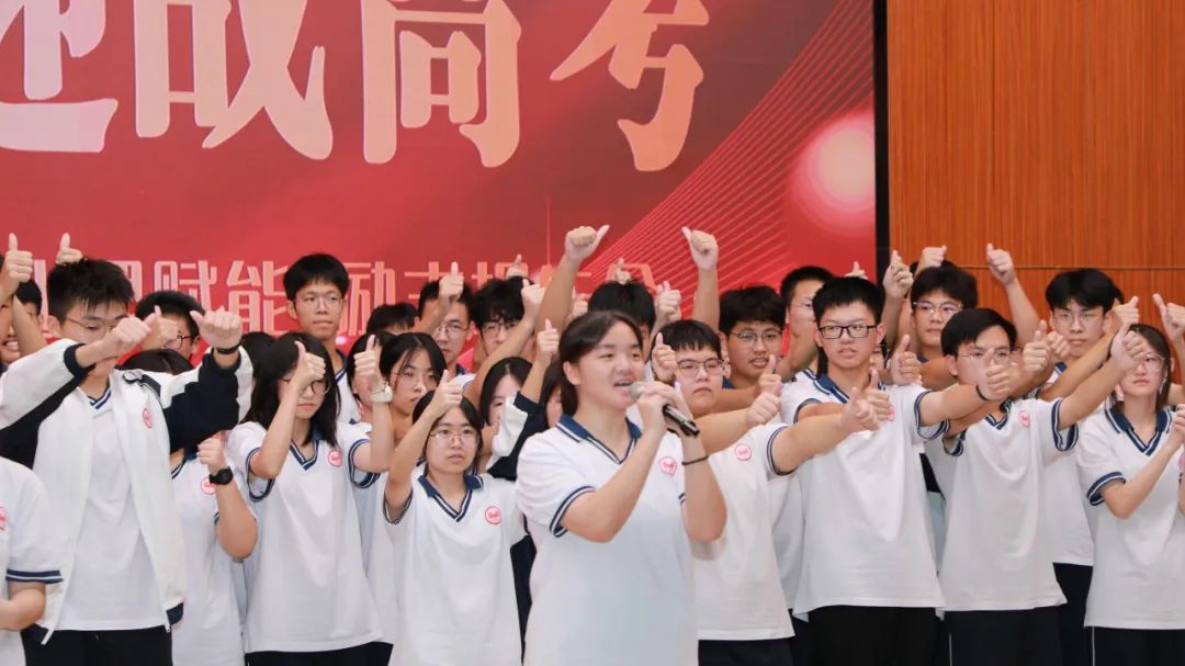 林夏蓉副校长带领高三年段同学们高举手臂进行宣誓活动。在林副校长铿锵有力的带领下,在距离2025年高考仅剩255天之时,同学们用饱满又充满激情的誓言为自己加油鼓劲,在一遍遍的呐喊中,同学们的眼神愈发坚定,誓言愈发有力,梦想也愈发靠近。
