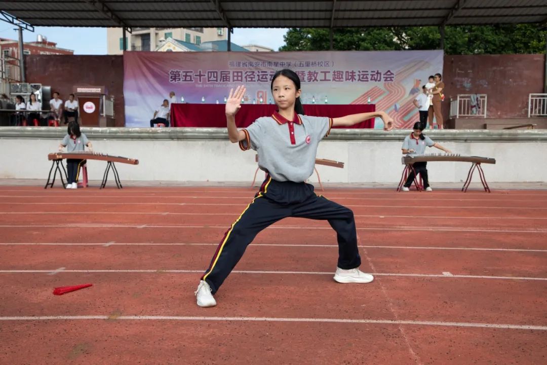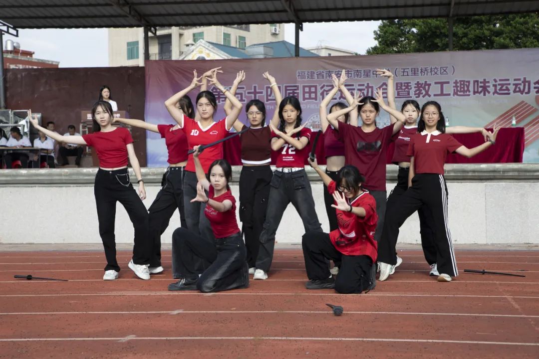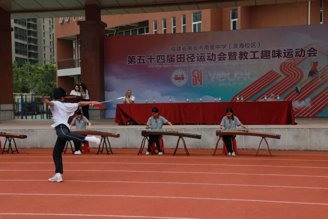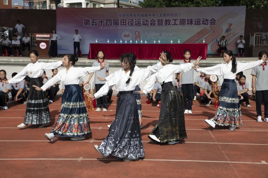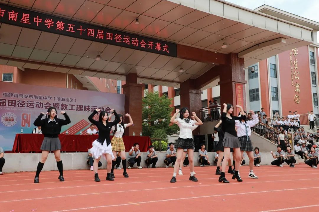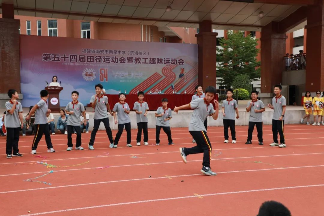 金叶纷飞落千果 硕果盈枝笑语喧 2024年10月16日与10月17日 南安南星中学第54届田径运动会 暨教工趣味运动会 在滨海校区与五里桥校区隆重开幕 青春同行,六千学子赛场襄盛会;弦歌不辍,九十七载风华映辉煌。全体师生在运动场上勾勒出一幅幅青春热血的画面,呈现出一场精美的视觉盛宴。学校党总支书记、校长黄新生,党总支专职副书记郑振隆,副校长徐文彬、周龙拿、林夏蓉及全体师生参加开幕式。 奏国歌,升国旗。 开幕式分别由政教处主任吕少东和团委副书记尤加鑫主持。 郑振隆专职副书记致开幕辞。 裁判员代表林敏老师(滨海)和洪香如老师(五里桥)宣誓。 运动员代表曾于涵同学(滨海)吕培霖同学(五里桥)宣誓。 国旗、校旗、彩旗方阵 迈着时代的步伐,和着运动员进行曲,在四名护旗手的护卫下,鲜艳的五星红旗缓缓进入会场。紧随其后的是校旗和彩旗方阵,他们步伐整齐,精神抖擞,意气风发,踏歌而来。 标语方阵 一块标语,就是一份荣誉,体现了无上的荣光,凝聚着无数南星人的心血,南星人为自己鼓掌,为自己喝彩。 吉祥物方阵 学生是我们的星宝,星宝是学生的最爱。这不仅是学生们对自我的激励,更是对学校精神的传承与弘扬,激励着每一个人在赛场上奋力拼搏,追求卓越。 裁判员方阵 在校运会的庄严时刻,裁判员方阵踏着坚定的步伐步入会场。他们神情严肃而公正,为校运会增添了专业与严谨的氛围,。 恰同学少年,风华正茂;骋飒爽英姿,一代天骄。开幕式其最为耀眼的焦点,无疑定格在了那激动人心的开幕式上——特别是各班级精心策划的入场展示环节。开放包容的南星中学为学生们构筑起一个绚烂多彩、彰显多元个性的璀璨舞台。 在这里,每一面飘扬的班旗都是梦想的翅膀,引领着青春的步伐;每一次创意的展现,都是对自我风采的极致诠释。同学们身着各异、创意无限的服装,踏着自信的步伐,高呼着响亮的口号步入会场,他们用最真挚的情感、最独特的视角,讲述着属于自己的故事,展现着青春的活力与风采。 01 社团展演秀,多元文化共交融 军鼓、小鼓队伍步伐铿锵,展现坚硬风采,与运动会竞技精神交相辉映。大鼓开场,震撼人心,鼓声激昂中尽显中华文化底蕴;拉丁舞热情奔放,舞者们以华丽舞姿点燃青春火焰,传递无限活力;现代舞紧随其后,自由灵动,诠释个性风采;古筝演奏悠扬悦耳,古典韵味沁人心脾,为运动会增添一抹宁静与雅致;最终,武术表演震撼登场,少年少女们龙腾虎跃,展现中华武魂。 02 殷殷传承念,古典舞韵展风华 随着悠扬的古典音乐响起,一支支身着华丽马面裙的班级方阵缓缓步入会场。他们以轻盈的步伐、曼妙的身姿,演绎了一段段经典的古典舞蹈。从《江南》的柔情似水,到《万疆》的刚劲有力,每一个动作都蕴含着深厚的文化底蕴,展现了学生们对中华传统文化的热爱与传承。 这场古典华韵表演,不仅让在场的师生仿佛穿越时空,感受到了古人的风雅与情怀,更激发了大家对传统文化的自豪感与使命感。 03 热爱祖国情,赤子之心映日辉 各班级方阵以丰富多彩的形式表达了对祖国的热爱之情。有的班级手持五星红旗,高声合唱《我和我的祖国》,歌声激昂,情感真挚,让人热血沸腾;有的则通过诗朗诵、情景剧等形式,讲述了中华民族的历史变迁和伟大成就,展现了中华儿女自强不息、奋发向前的精神风貌。这些表演,不仅增强了学生们的爱国情感,也让他们更加坚定了为中华民族伟大复兴而努力奋斗的决心。 04 青春活力舞,阳光少年展风采 青春活力的现代舞表演点燃了全场的热情。学生们身着时尚服装,伴随着动感的音乐节奏,尽情释放着青春的活力与激情。街舞、爵士舞、啦啦队操……各种风格迥异的舞蹈轮番上演,展现了当代中学生的多才多艺和青春魅力。他们的笑容灿烂,舞姿灵动,让整个会场洋溢着青春的气息和欢乐的氛围。随后,青春活动的展示将开幕式推向了高潮。学生们纷纷拿出自己的看家本领,从全班团舞的合作,到街舞、啦啦队操的激情四溢,每一项活动都充满了青春的活力与魅力。他们用自己的方式诠释着青春的定义,展现了当代中学生的风采与自信。观众们的掌声与欢呼声此起彼伏,整个会场洋溢着欢乐与向上的氛围。 南星学子以共同的信念为底色,携手绘制出一幅幅多彩的未来画卷。健康,在笑语中传递;优秀,在汗水中绽放;青春,在这里登场。 在全场师生的热切期盼中,黄新生校长庄重宣布:“南星中学第54届田径运动会暨教工趣味运动会正式开幕!” 这一刻,不仅标志着南星中学体育盛事的启幕,更是全校师生团结协作、勇于挑战、追求卓越精神的集中展现。运动会将成为展现南星风采、凝聚集体力量、放飞青春梦想的璀璨舞台。 策划:校宣组 图片:庄文权 吕俊鑫 撰稿:李诗婷 陈柏源(初二12班) 编辑、初审:李诗婷 复审:林夏蓉 终审:郑振隆