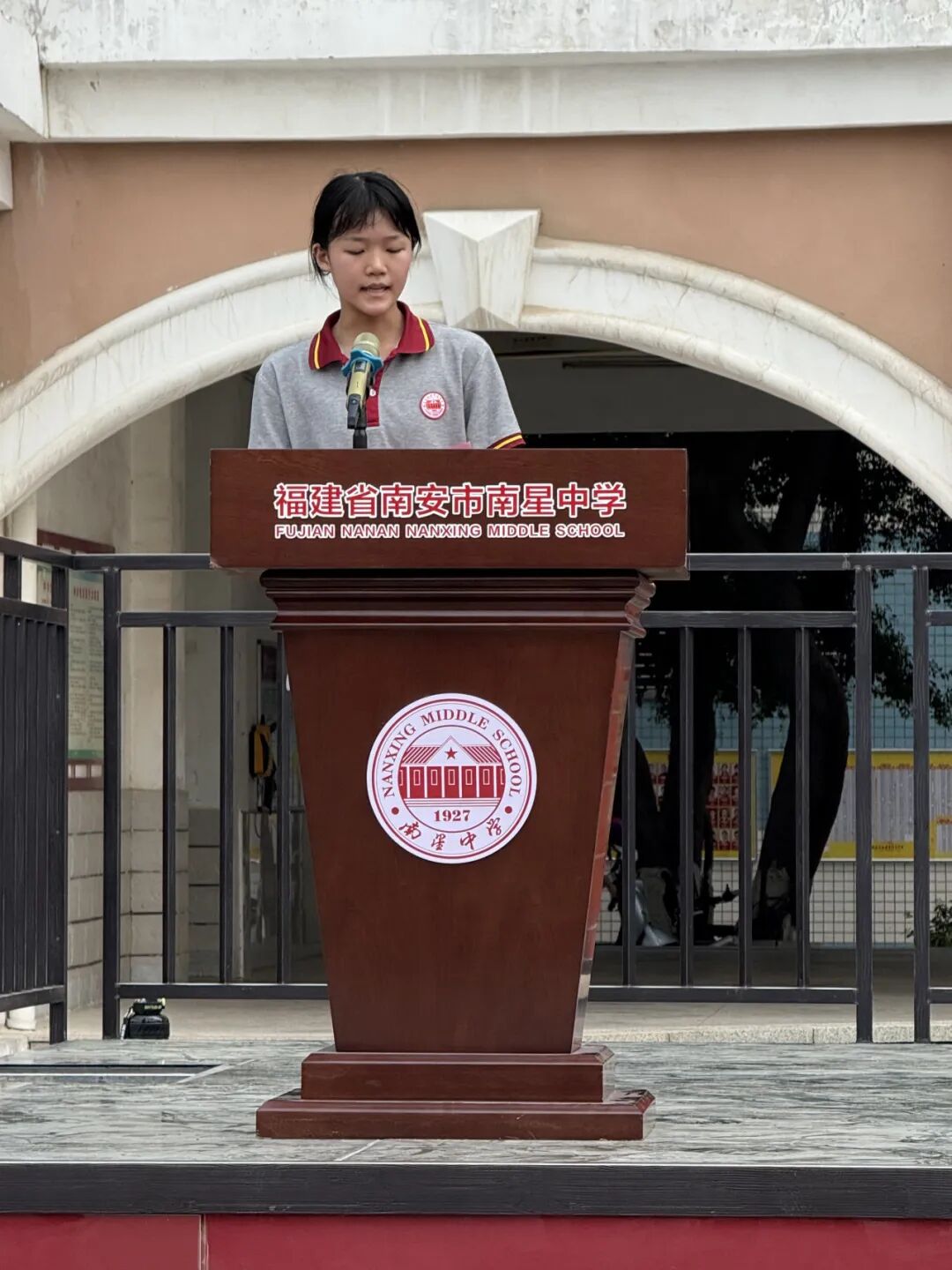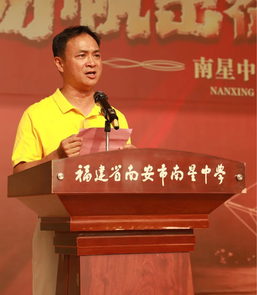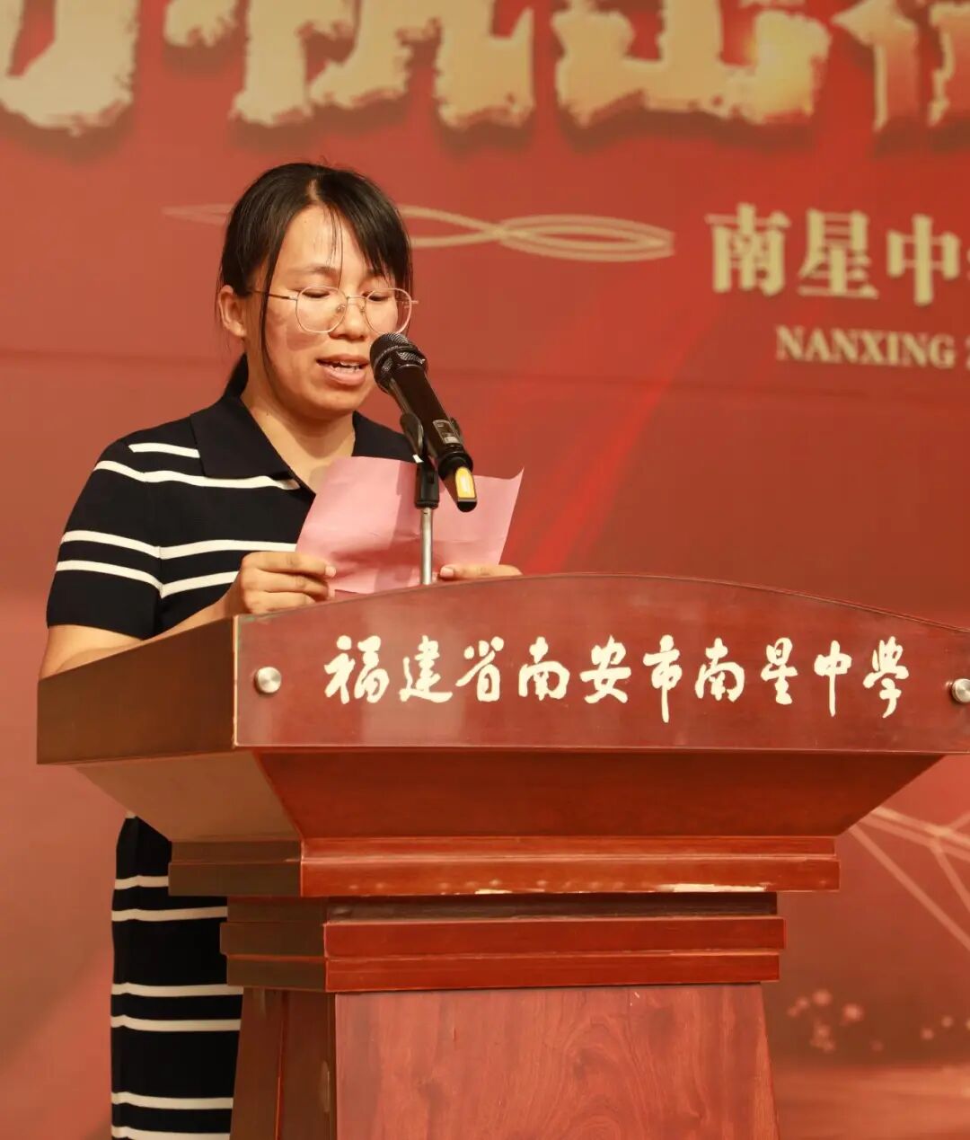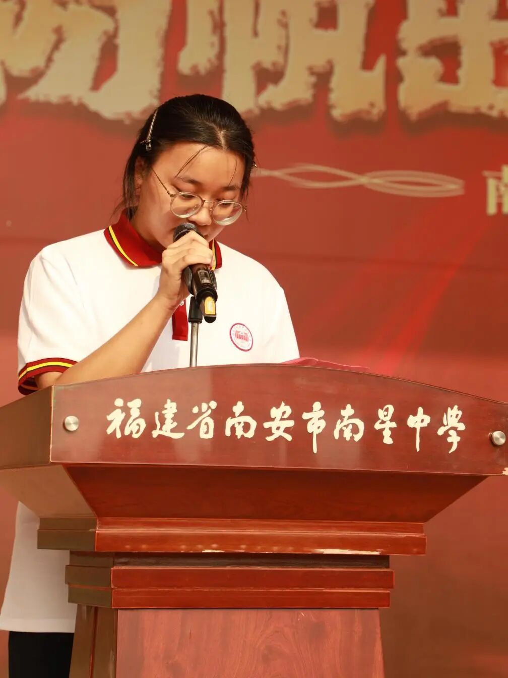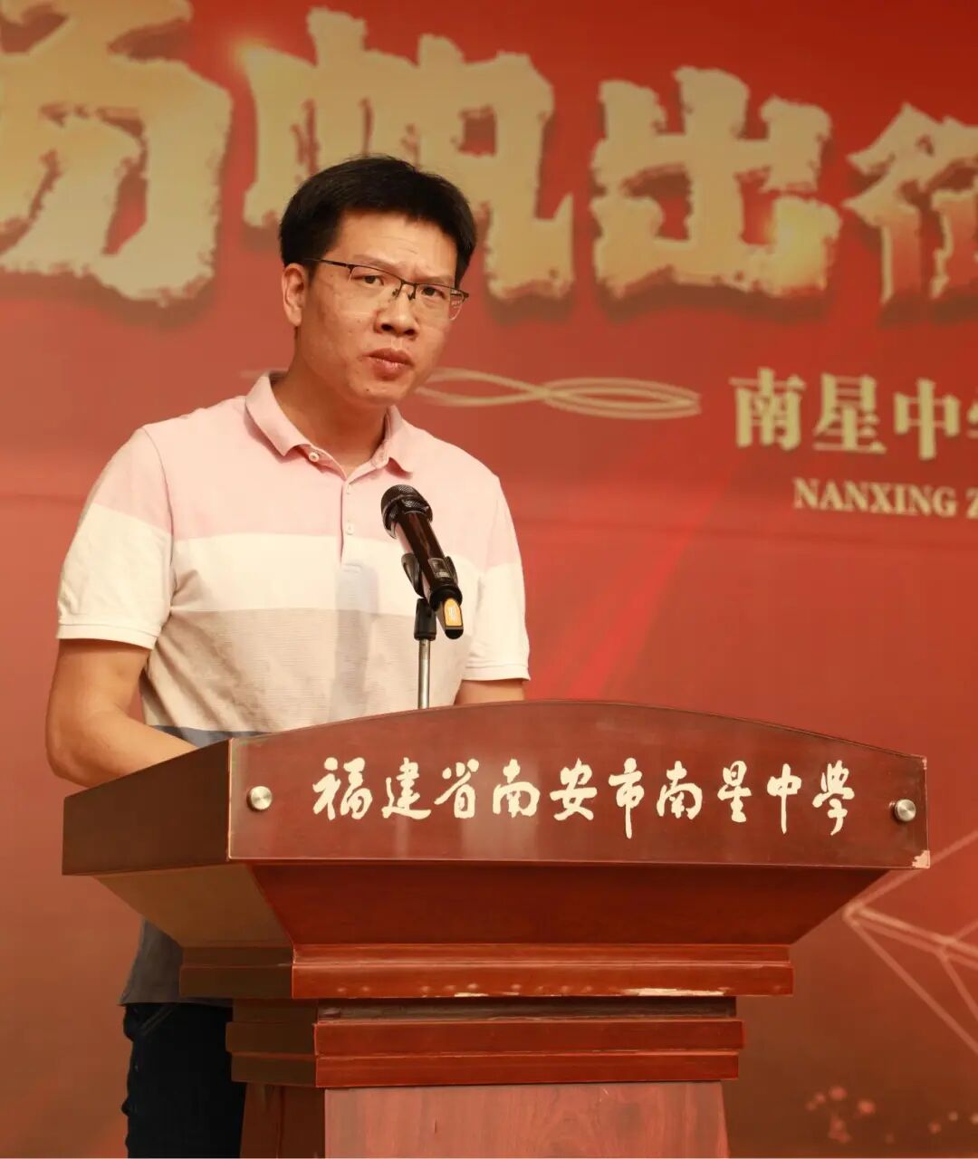 江鸿霖副宣读2025届中考成绩位居南安市前1000名并签约录取于我校的学生的表彰决定,激励新初三学子以此为榜样,奋进拼搏。